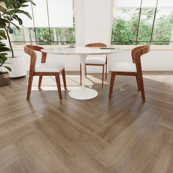 Kolekcja inspirowana klasycznymi gatunkami drewna – od subtelnej bieli White Oak, przez złote tony French Oak, po eleganckie wzory Chevron. Dzięki wysokiej rozdzielczości nadrukom i realistycznej strukturze powierzchni (autentyczne tłoczenia, micro bevel), każda deska wygląda jak naturalne drewno.